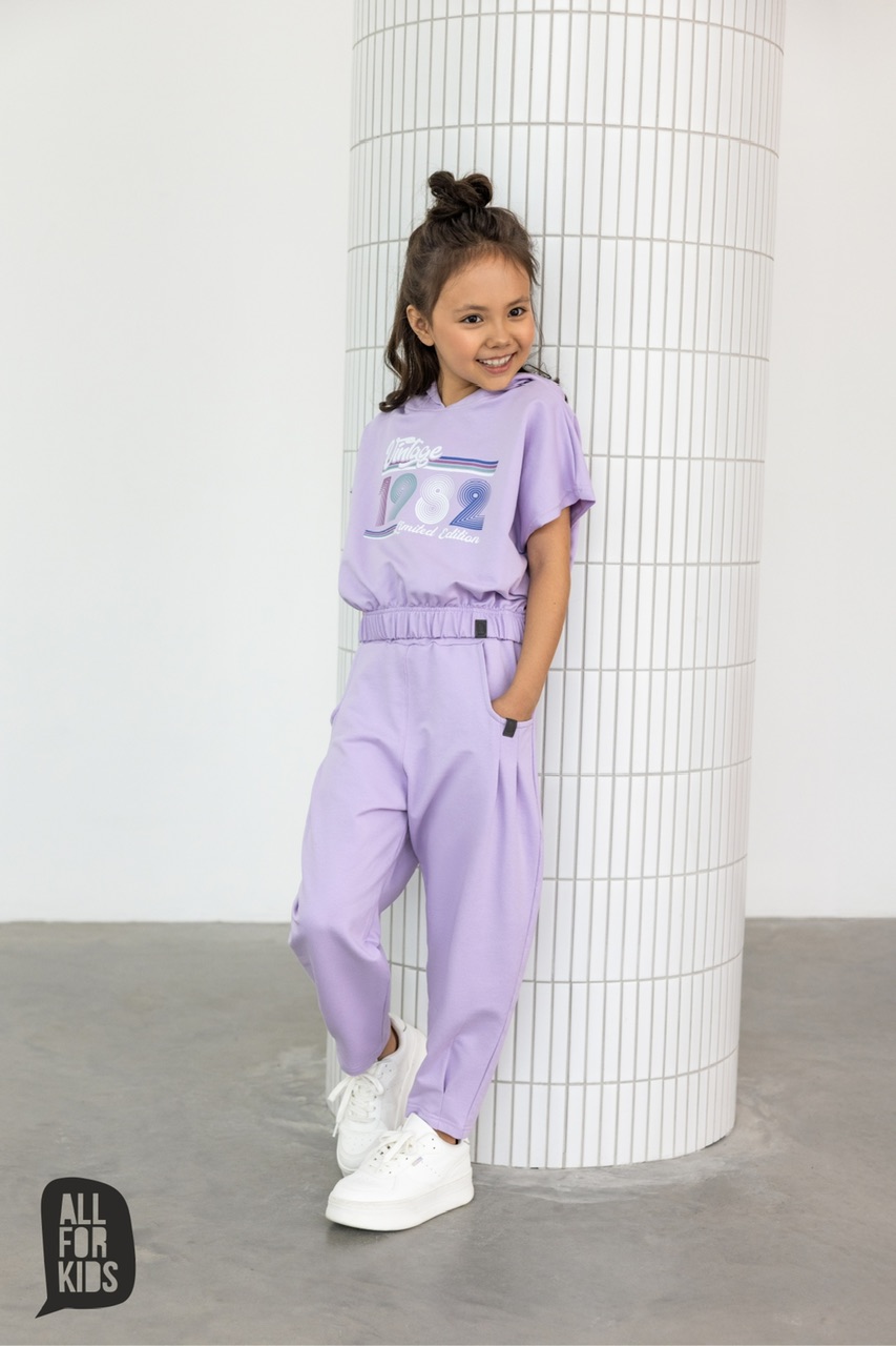 Paskutinė All for kids vasaros kolekcija pristato be galo gražų kostiumą mergaitei! Alyvinės spalvos palaidinė su gobtuvu, trumpomis rankovėmis ir apačioje sutraukta guma! Labai švelnios, malonios ir patogios medžiagos. O koks stilingas kostiumas net minėti nebereikia💜